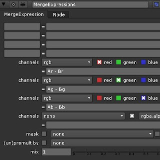 ちなみに、RGB値の(この場合ベクトルでのxyzの)四足混合の一つずつだけなら、ExpressionNodeを使わずにMergeNodeの "add" "minus" "multiply" "divide" でも出来ます。順序はA operation Bのようです。minusなら A-Bの順序で組むことが可能です。